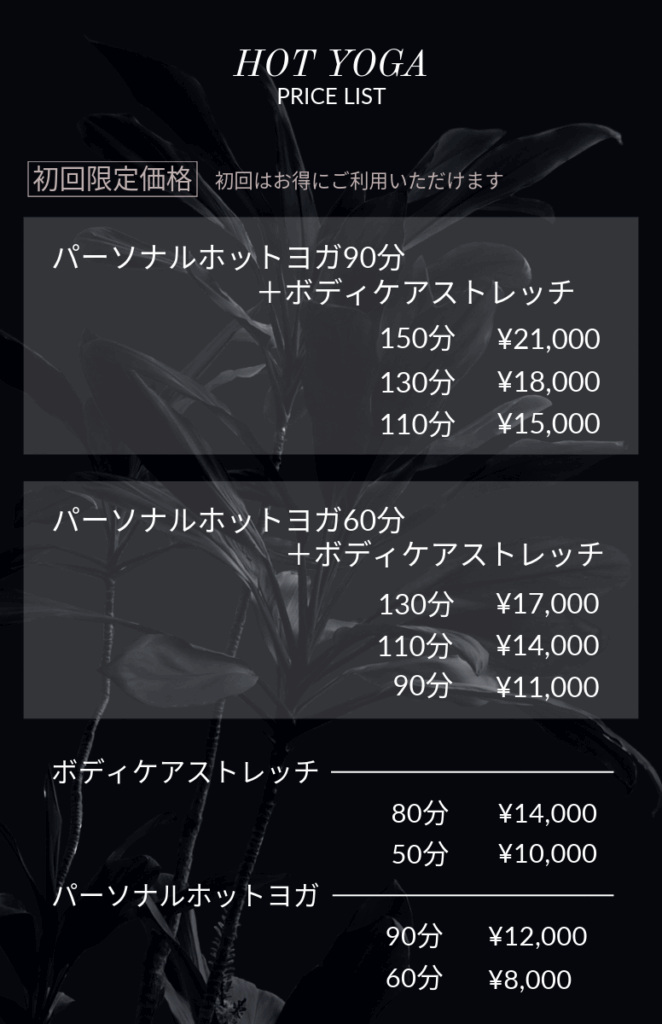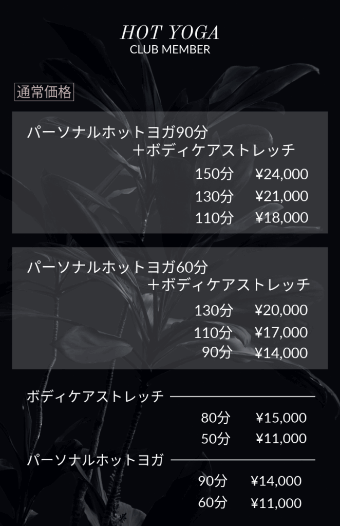 身体を動かして綺麗になりたい日はホットヨガで、1日頑張ったご褒美に疲れを取りたい日にはフットマッサージで、その日の気分や体調に合わせてお好きなコースをお選びいただけます。